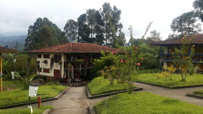 Salento s’est également beaucoup développé au niveau touristique, local avec les colombiens de la région en visite dominicale, mais aussi beaucoup d’étrangers, et donc tu peux trouver des installations sympathiques, comme ce petit sentier arboré qui t’amène directement au village construit par les japonais pour reloger 19 familles d’artisans après le terrible tremblement de terre d’Armenia en 1999.