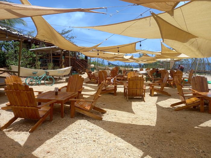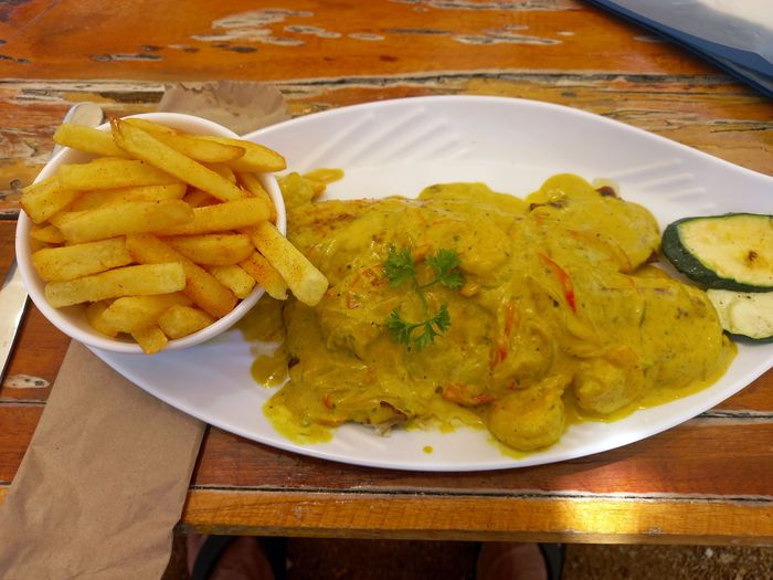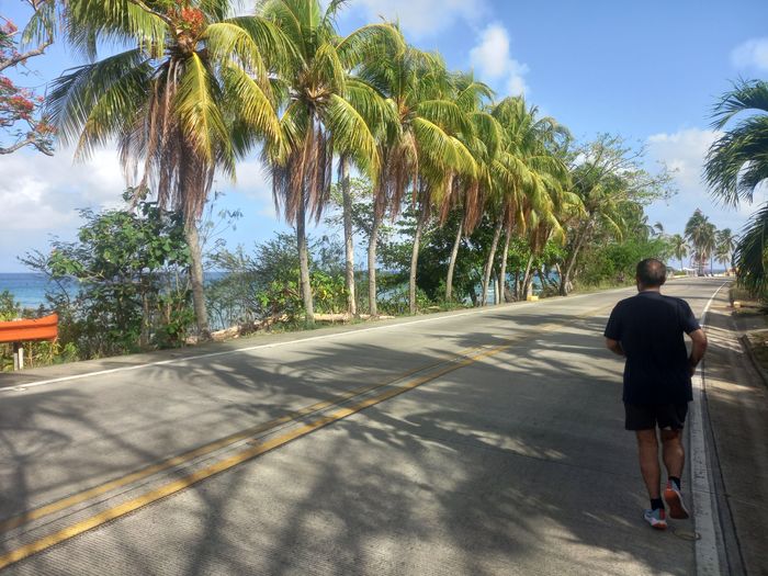 Dimanche très tôt ce fut donc, tu le sais, la course! Mais à 10 heures, l’avantage est que nous avions toute la journée (vol de départ à 21h39) pour se remettre tout en profitant des charmes de l’île! Ce que l’on fera juste de l’autre côté de la route, dans une sorte de club de plage, mais sans plage vu la côte ici!