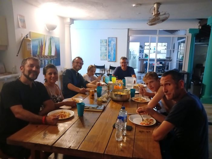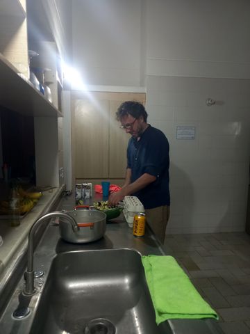 L’avantage est que tu as une cuisine à disposition! Idéal, sachant que les repas coûtent plus chers à San Andres que dans le reste du pays, que l’on était 11 et que nous devions manger des pâtes (le samedi soir surtout, mais le vendredi aussi)! Et là, le chef-cuistot, c’est Anto!