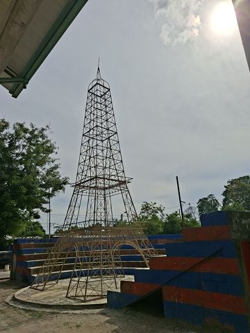 J’aime beaucoup ! La main courante du terrain de foot (façon pneus ) , la Tour Eiffel , les décos Schtroumpfs !