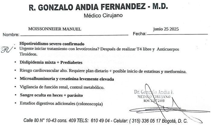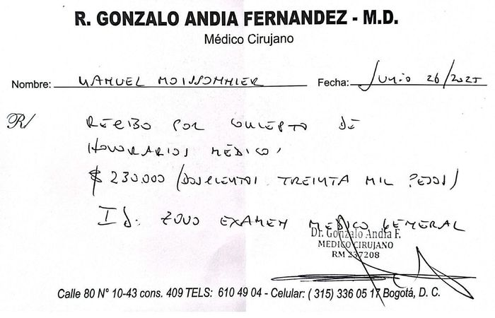 En Colombie, car n’ayant pas de médecin traitant en France, c’était plus simple. Après demandes auprès de mes collègues, j’allais donc voir le Docteur Andia.