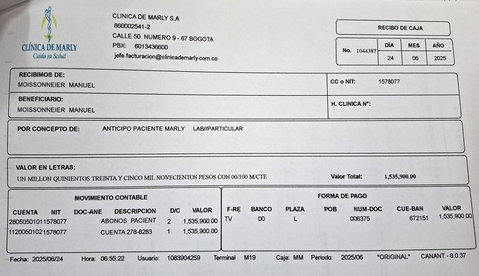Quand je disais que avec la carte vitale tu perds les notions de coûts! Plus de un million 500.000 pesos de facture (350€)! Heureusement qu’ils prennent la carte bancaire.