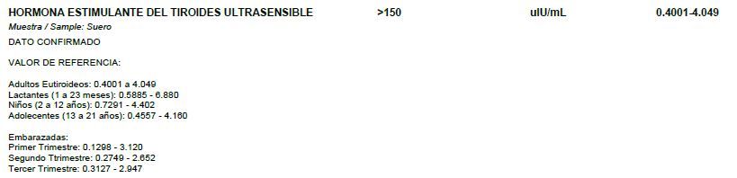 Car les colombiens avaient seulement dit THS supérieures à 150, les français me diront exactement 226. Les taux normaux devant se situer entre 2 et 4!