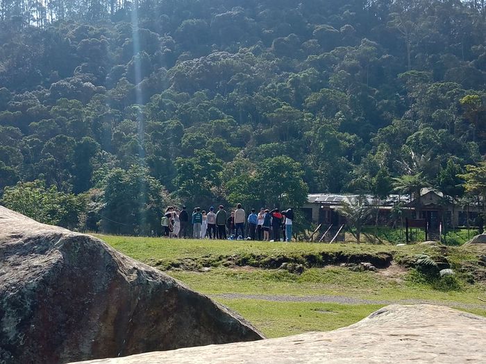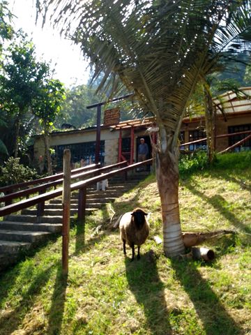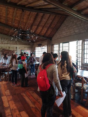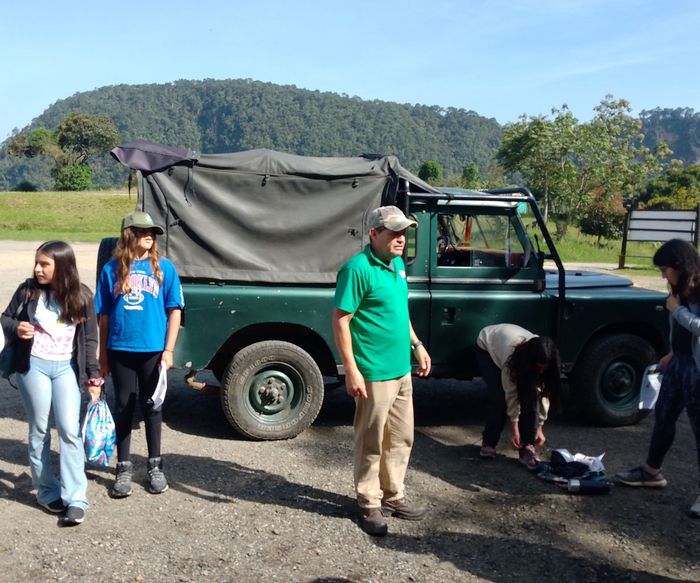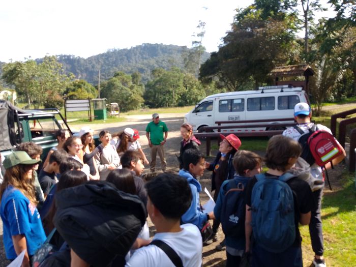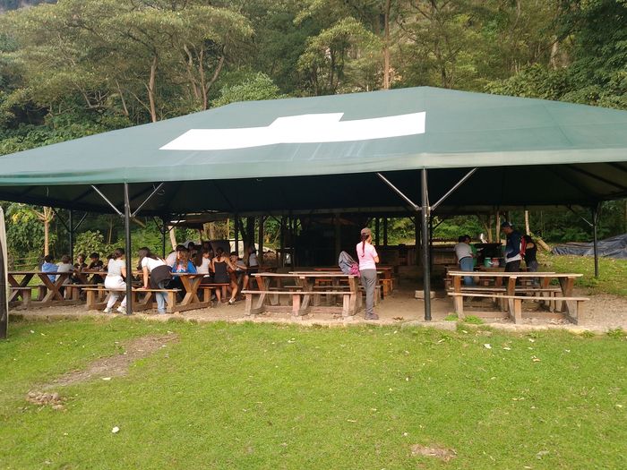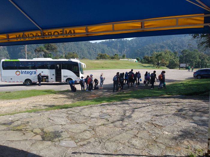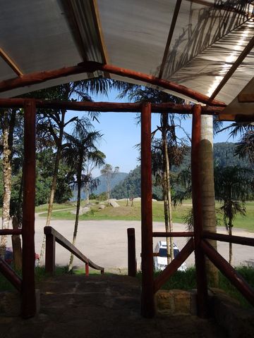 Arrivés sur place (à 9h15 donc), on charge les gros sacs dans le 4×4 qui les descendra au chalet. Puis c’est un petit refrigerio dont les colombiens ne peuvent se passer, dans les bâtiments à l’entrée du Parc National.