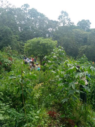 Après le déjeuner, et la répartition des élèves dans les chambres, nous repartons: direction la huerta, le potager du lieu, qui alimente le restaurant sous format de permaculture.
