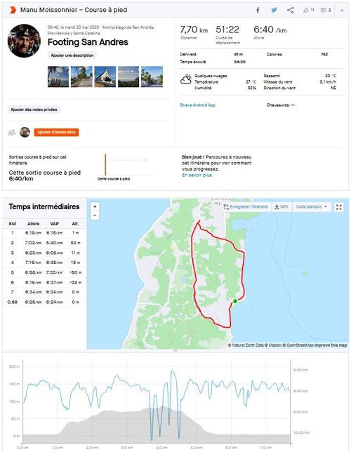 Tu l’as, à force, compris, le sport me (nous, Lina adhère aussi) sert à découvrir nos lieux de villégiature. Et San Andres n’échappa pas à nos activités physiques!