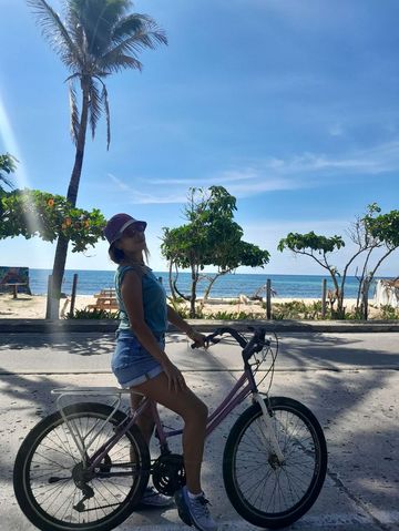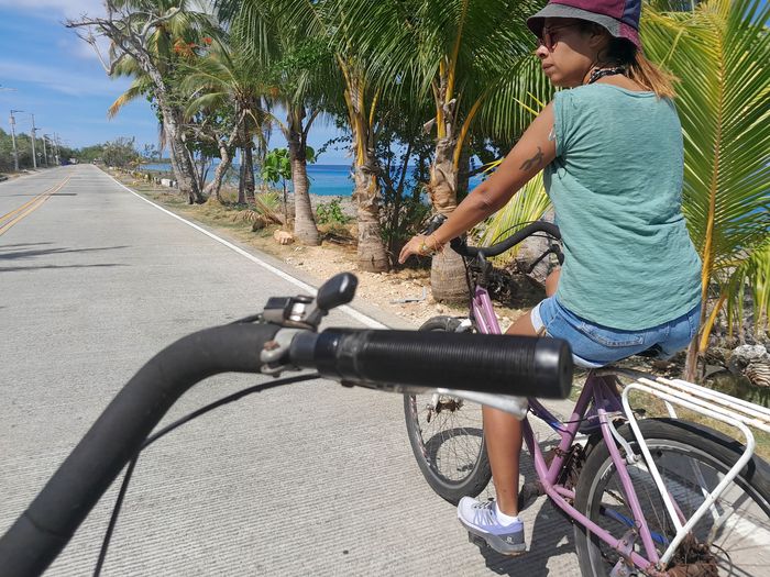 Le lendemain nous vient l’idée de tenter de louer des vélos! Or, c’est plutôt rare (beaucoup plus que les scooteur et les voiturettes de golf) et au centre! Mais l’hôtel nous propose le prêt de 2 de ses biclous! Et quels vélos!