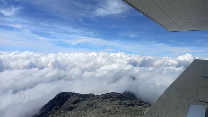 Et sortir voir la vierge posée là, le fier drapeau vénézuélien planté là et les cîmes alentoures, donc le Pico Bolivar, plus haut sommet du pays!