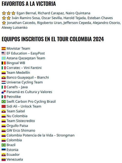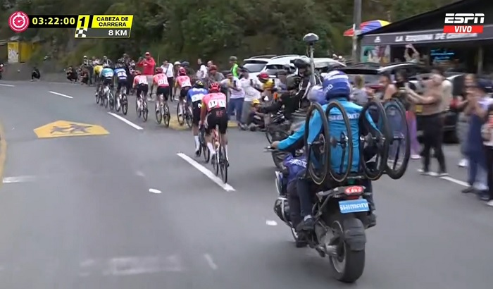 Un groupe de leaders digne des plus grandes courses européennes: Bernal, Carapaz, Uran, Chavez, un maillot jaune colombien qui donne tout pour garder son bien, Contreras, un jeune loup mexicain, Mutis, qui vise la tête du classement des sub23 (jeunes) et un autre équatorien Caicedo, 2e au classement général!