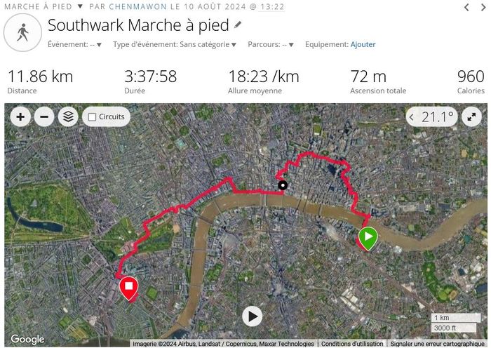 Car pour ces 10 jours de voyage (du 9 au 19 août), ce ne sont pas moins de 100 kilomètres de marche à pied dans les rues de Londres, Poole, Granvillle, Paris ou encore St Germain en Laye que nous avons avalés!