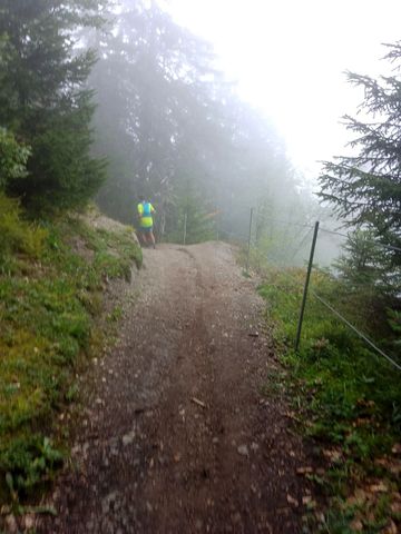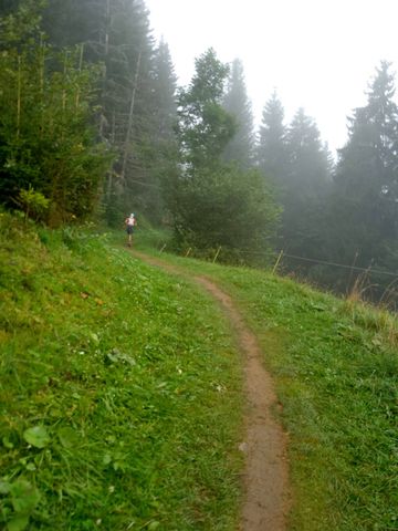 Stratégie qui, vu le climat, le terrain, la pente, explosera vite en vol (enfin surtout à cause du niveau du coureur…). Mais il faisait frais, idéal pour courir, et la nature était belle, bien que brumeuse!