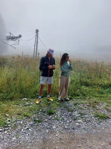 Puis ce sera la route…. sous la pluie et un temps bien assez long entre échauffement et attente sous le ciel nuageux de La Clusaz.