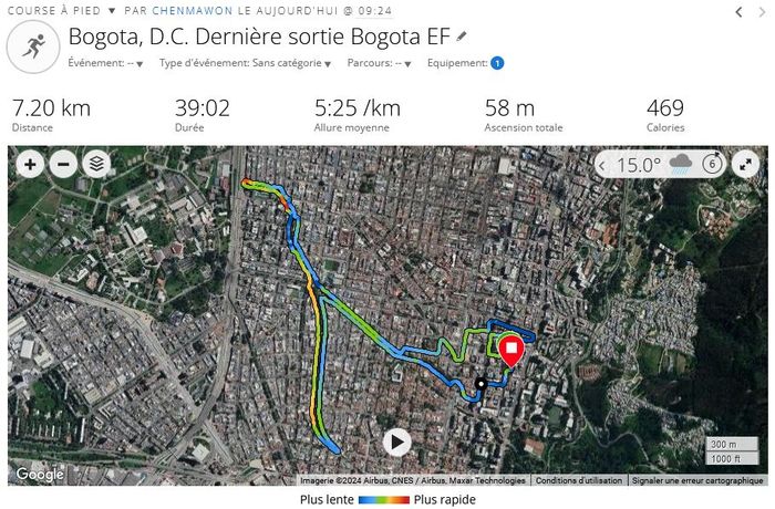 Et une dernière sortie en altitude à Bogota, avant le retour en France: courte car fiévreux et grippé, sur mon parcours plat favori du Rio Azorbispo.