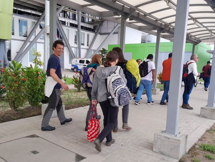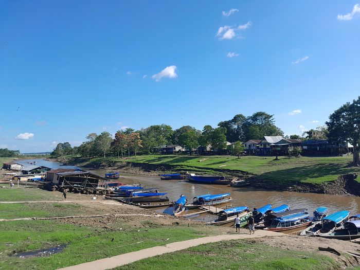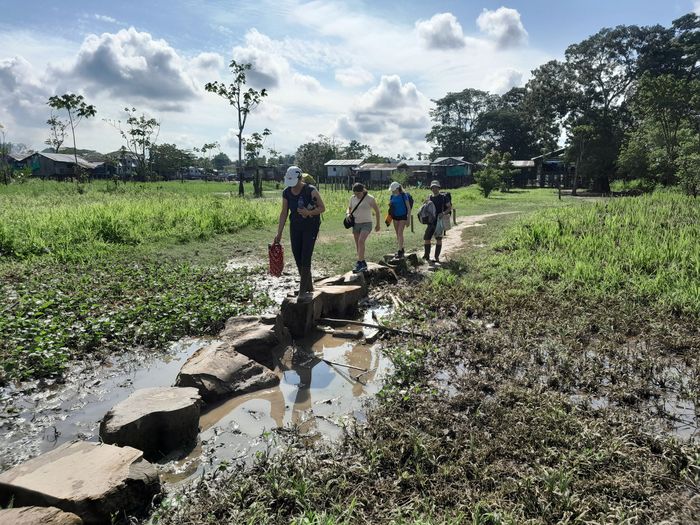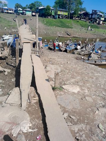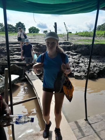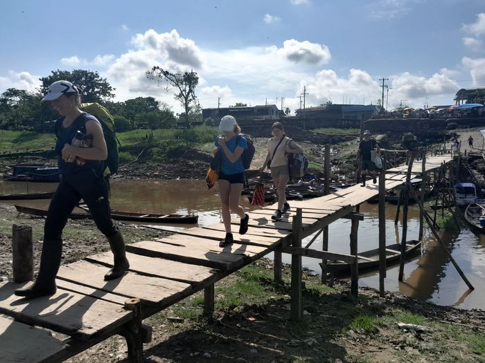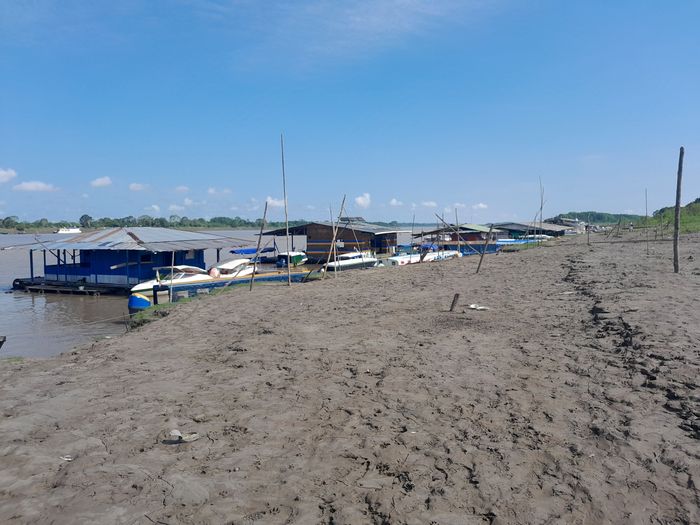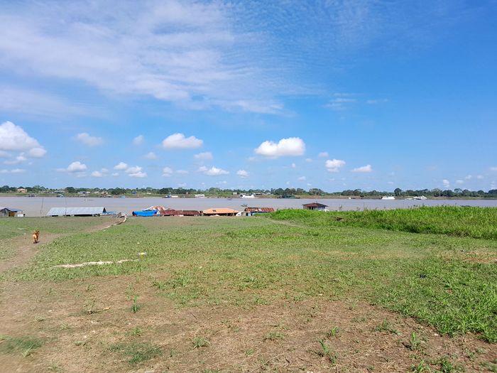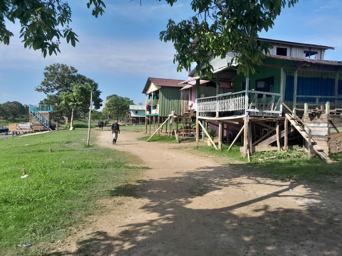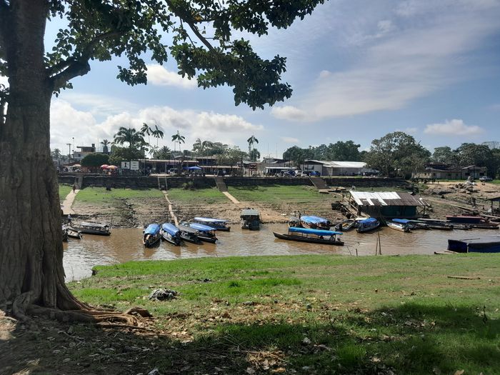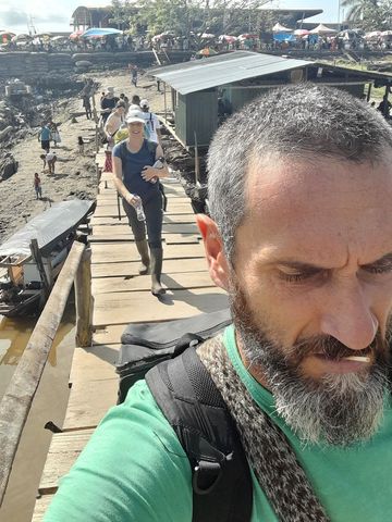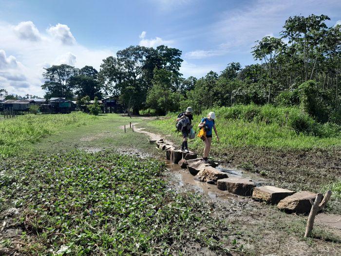 Le lendemain matin, 9h, départ à pied, car en saison sèche, l’embarquement se passe de l’autre côté de la petite île devant Leticia.