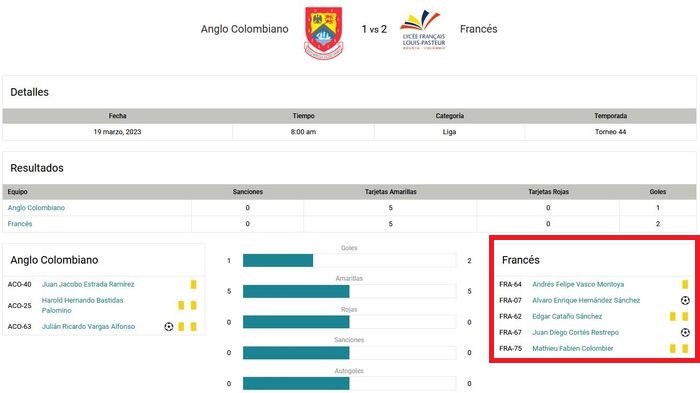 Et arrive alors une nouvelle belle victoire de mes copains, alors que je suis en train de courir moi-aussi, mais à plusieurs centaines kilomètres de là! Contre une grosse équipe, l’Anglo-Colombiano, pour qui nous sommes visiblement la bête noire! 3 matchs en 1 an, et 3 victoires, dont la finale de la 3e division en décembre dernier! Le tout en étrennant nos nouveaux maillots!