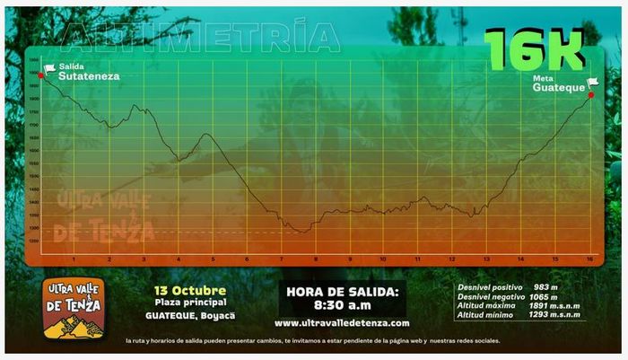 Course visiblement importante du calendrier colombien, et assez cotée, avec 4 épreuves au menu: 8, 16, 32 et 50K. Et une jolie infographie qui permet de comparer ces 4 distances: