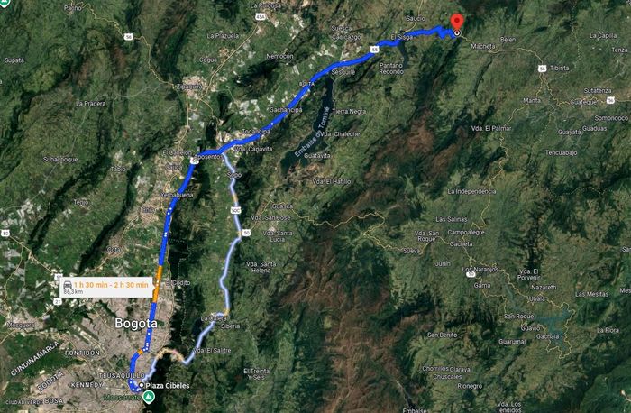 …. mais située à Choconta, à une heure 15 de route du départ. Ce qui nous obligera à un peu de jonglerie le dimanche matin (départ du 32K à 7h00, du 16K à 8h30) mais aussi pour récupérer les dossards (récupérables le samedi ou le dimanche avant la course).