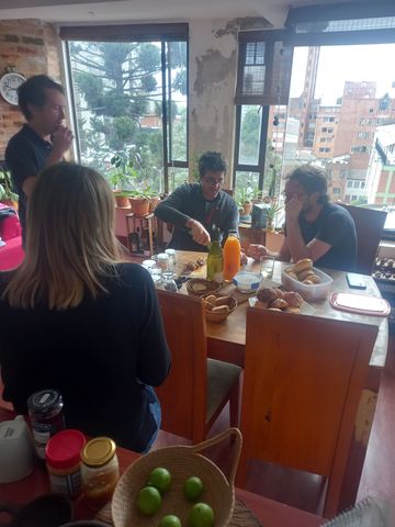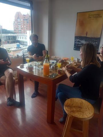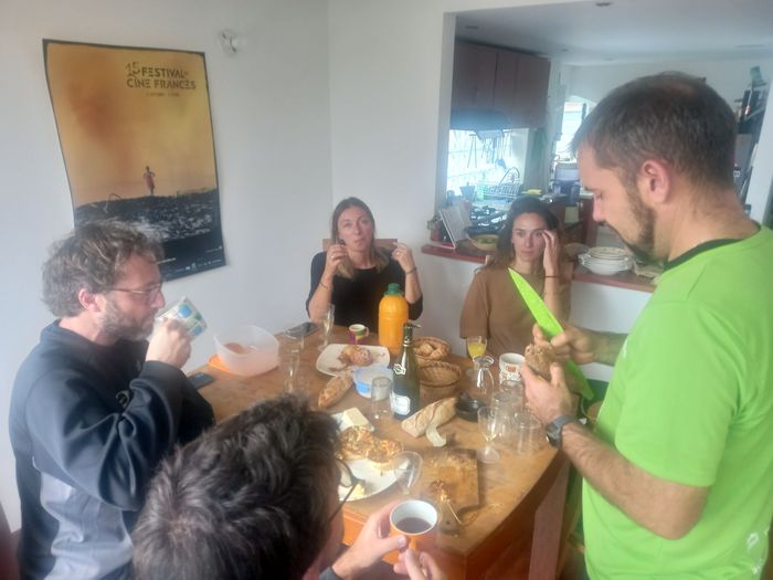 Finalement le meilleur moment ce fut peut-être le brunch casse-croûte pris ensemble (rejoins par Sabrina, Pauline et Ana qui avaient du sentir le coup…) pour fêter la fin de saison des Coqs en Vain. Vin blanc, saucisson, café, viennoiseries, sandwich, quiches, fromages, et surtout le fameux mimosa (cocktail champagne-jus d’orange).