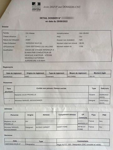 16 mois (oui tu as bien lu) plus tard, j’ai donc reçu une réponse, qui ne va pas du tout dans mon sens! Je suis visiblement condamné à être usurpé toute ma vie, à dépenser des milliers d’euros en lettres recommandées pour contester les infractions qui vont donc continuer à pleuvoir!