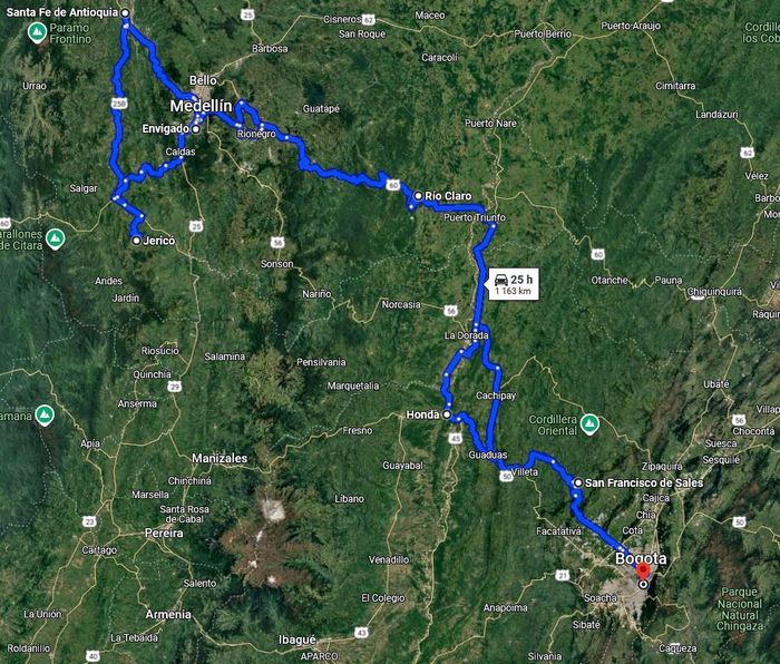 En tout cas, le billet d’avion de la miss est acheté (38€ l’aller Bogota-Medellin avec Wingo). Et ce sera, demain samedi, pour moi la plus longue étape, 360km et entre 7 et 10h de route en fonction du trafic (qui en plein week-end de Pâques devrait être léger). Pour la rejoindre à Envigado, dans la banlieue de Medellin.