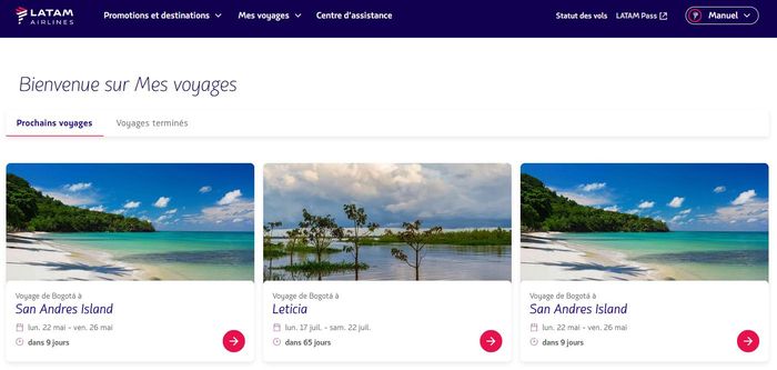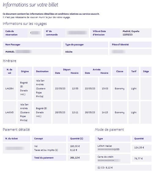 Vu le taux de change du moment, tu constateras que le même vol, mêmes dates, mêmes horaires, mêmes conditions (un bagage cabine de 10kg) te coûte 210€ sur le site Latam France, et 180€ sur Latam Colombia! 30 balles de différences!