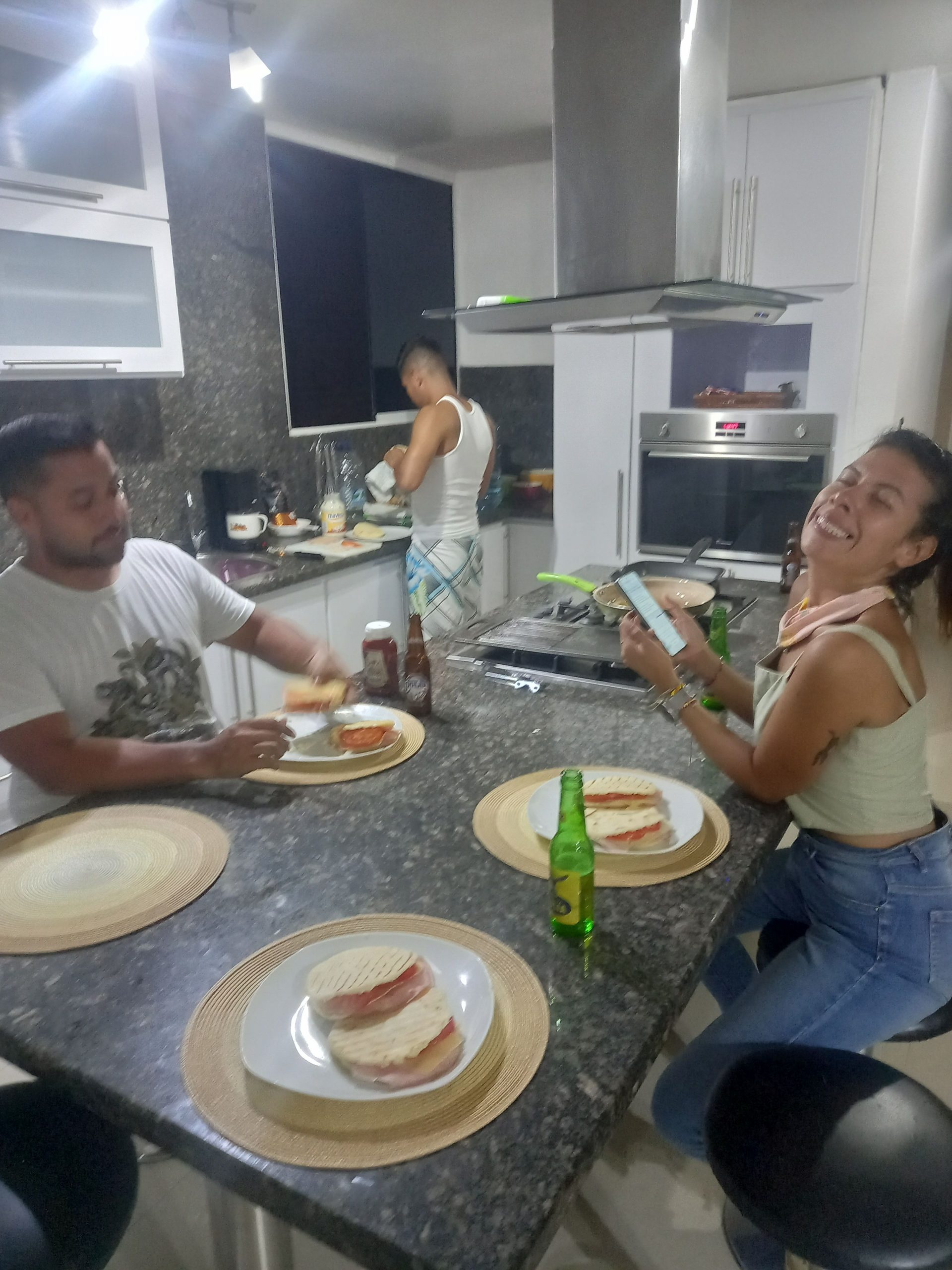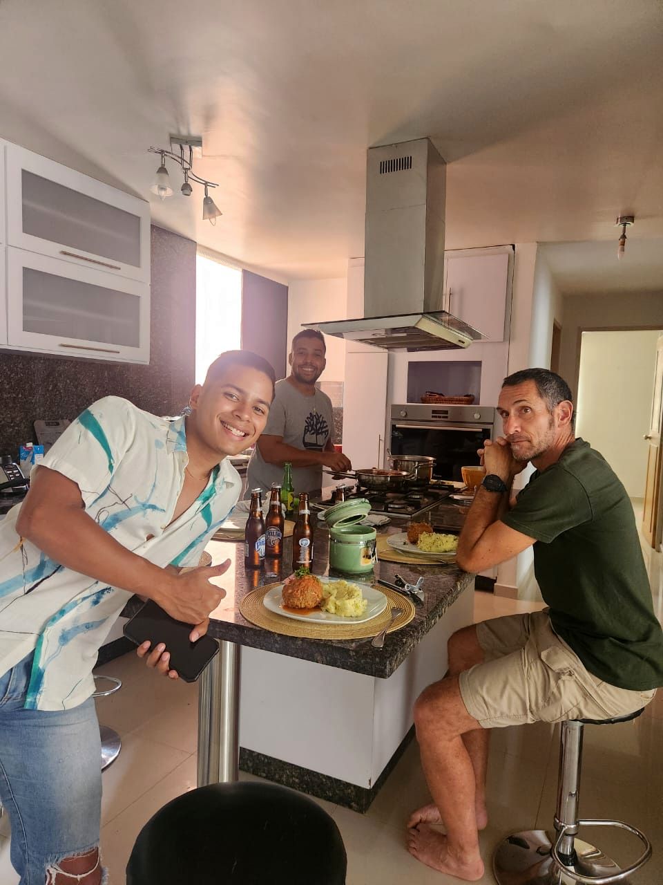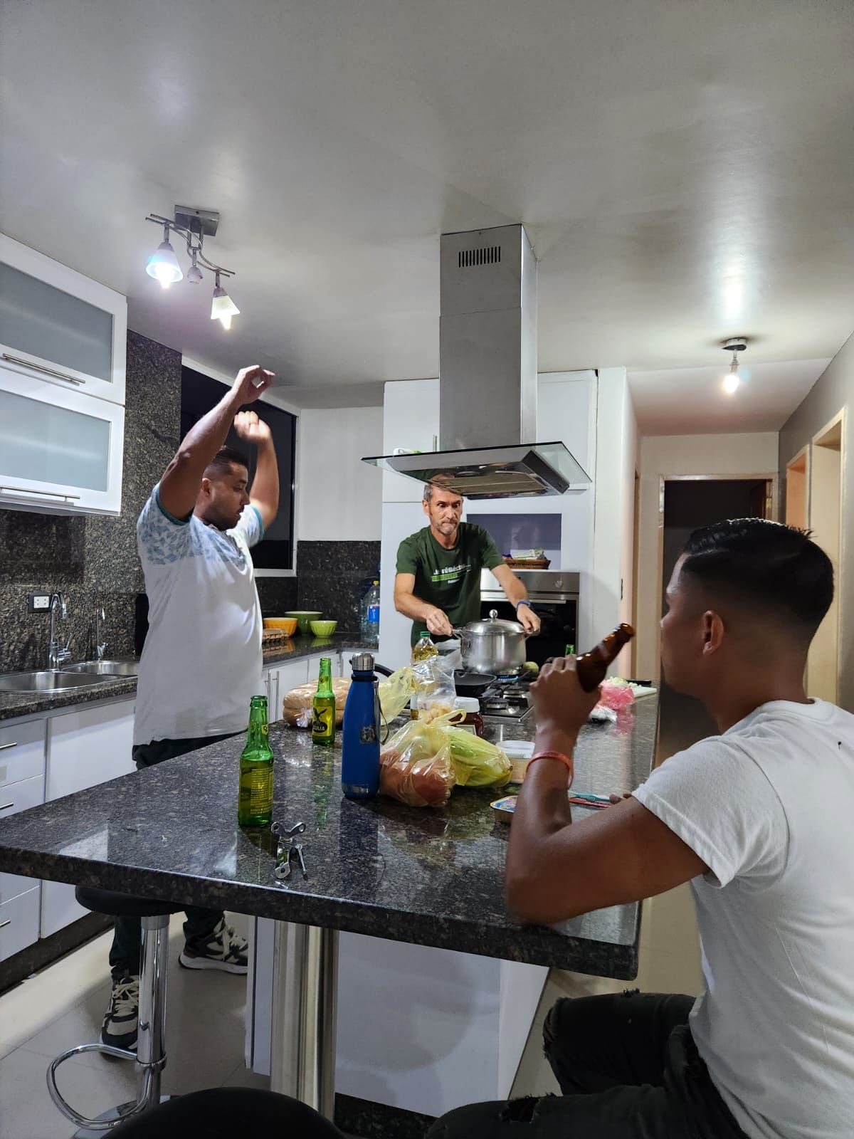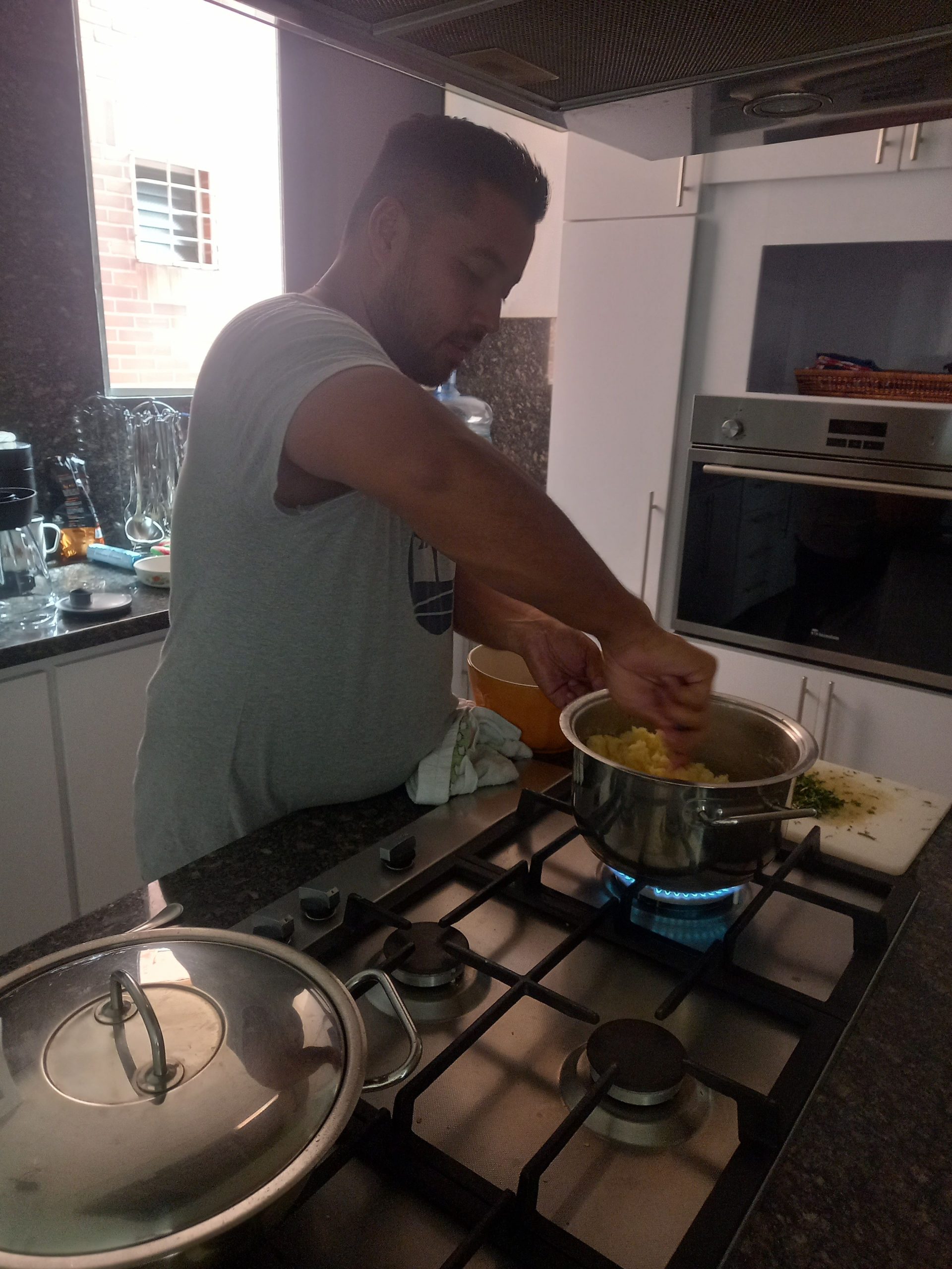 Question d’économies pour nos hôtes vénézuéliens qui ne roulent pas forcément sur l’or…. Chacun son tour, ratatouille pour moi, pasta al horno pour Lina mais le chef cuistot principal fut doc Yil!