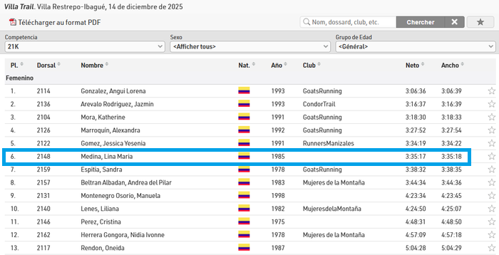 Voilà pourquoi nous sommes encore plus déçus. Lina s’est fortement affronté à une candidate, terminant 4e, qui a fait un morceau du parcours accrochée à une voiture. Elle l’a juste signalé à l’organisateur à l’arrivée. Mais la coureuse incriminée, ne se sentant pas à l’aise se tenait proche du gars pour se justifier. On a donc eu droit à « je n’étais pas accrochée je jouais avec un chien ans la voiture ». En pleine course ok! La maman s’en mêlera à grands coups de « sur la Sainte Vierge » et de « je n’ai pas élevé ma fille comme cela ». L’organisateur, du même club des GoatsRunning d’Ibague, finira par dire à Lina, qu’elle a sûrement du mal voir….