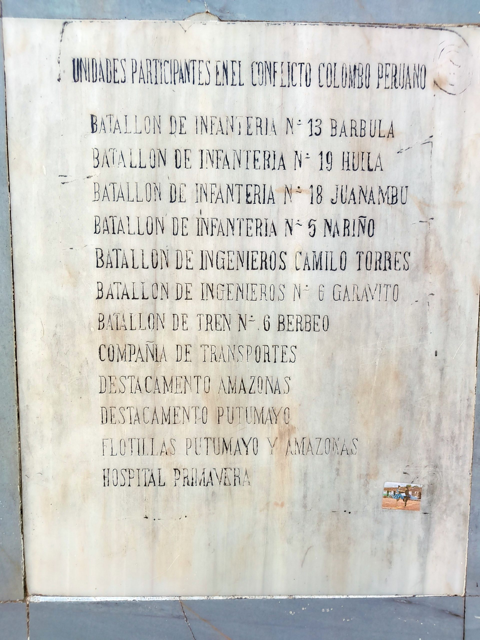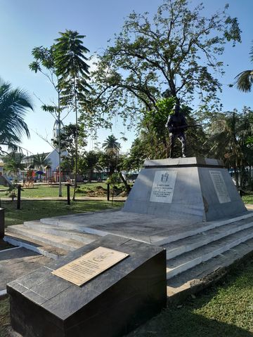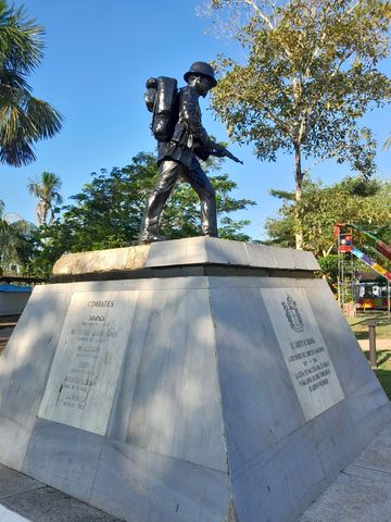 Sinon pour la présentation exhaustive: j’ai appris que Leticia avait été la raison d’une guerre entre la Colombie et le Pérou (la zone s’appelle les 3 frontières, car en quelques kilomètres, tu peux passer de la Colombie au Brésil ou au Pérou). Et comme la plupart des habitants originelles de ce qui n’était qu’un peti bourg était péruvien, le pays a donc décidé d’envahir la ville, ce qui déclencha une guerre qui dura 3 ans, dans les année 1930. Les péruviens furent batttus, ayant misé sur l’éloignement de Bogota, et le désintérêt des colombiens pour la zone. Il y a donc sur la place principale, un monument rappelant cet épisode.