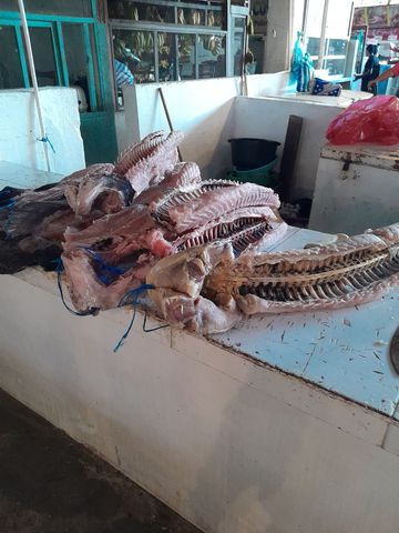 ….. sa plaza de mercado, le marché municipal….avec évidemment moult fruits, mais surtout les poissons du fleuve dont le géant Pirarucu.