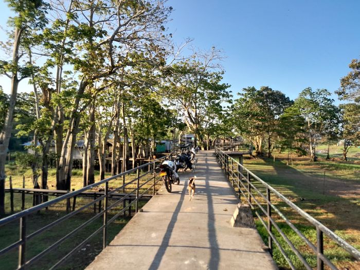Et surtout découvrir les particularités architecturales qu’impliquent sa situation au bord d’un fleuve dont le niveau varie beaucoup entre saison des pluies et saison sèches: outre les maisons sur pilotis, ainsi que la « promenade » en béton pour y accéder, il y a aussi les maisons posées sur d’énormes troncs d’arbre pour flotter lorsque l’eau remonte!