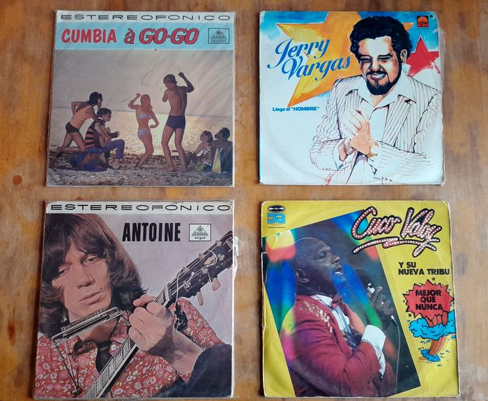 Et voici donc la récolte du jour, après une trentaine de minutes à farfouiller dans les bacs. Toujours selon le même principe (un pour la couverture, un en pensant à un ami, un français et un culturellement important en Colombie).