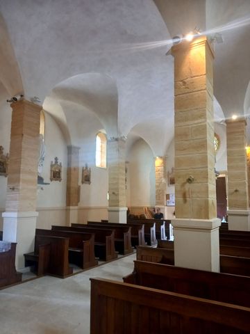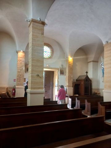 Attention je te fais la visite guidée mais avec du vocabulaire de base et mes propres impressions. De taille modeste, avec de beaux piliers en pierres dorées et des vitraux lumineux.