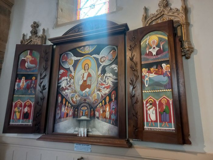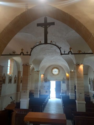 Oupppps j’ai failli oublié: cette église s’appelle Église de la Nativité – St Jean Baptiste. Et elle possède une cryopte, également totalement peinte, mais très dégradée par l’humidité ambiante, qui n’est visitable que lors de Journées du Patrimoine. J’en ai trouvé de rares photos ici.