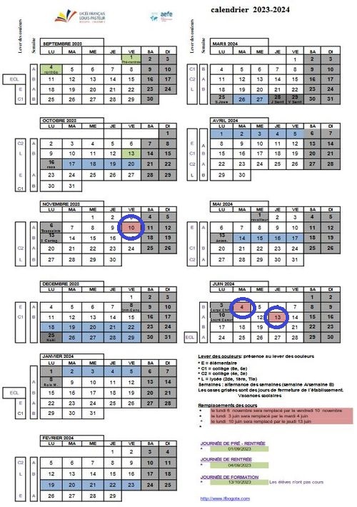Même si cette année, une riche idée a été d’inclure un maximum de ces lundi dans les périodes de vacances, il reste quelques jours dans l’année, qui ne sont pas des lundi, où l’on applique l’emploi du temps de ce jour-là.