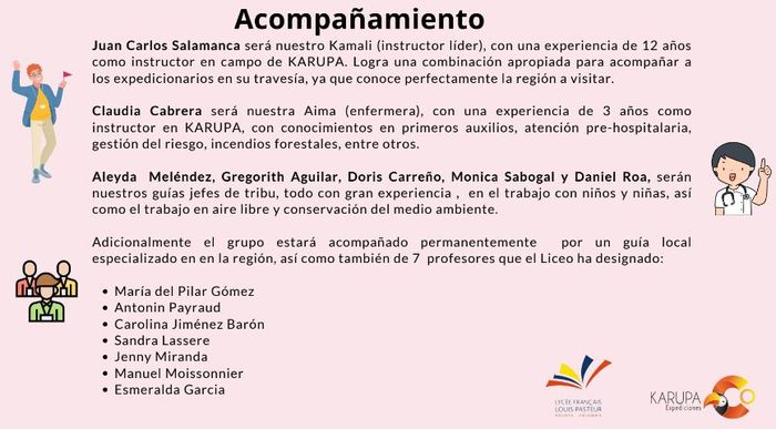 Même au niveau des accompagnateurs (moins nombreux car moins de participants, car l’an passé, l’effervescence était due à la reprise des voyages post-pandémie). On retrouve Pili, Carolina, Sandra, Esmeralda et j’échange Paola, ma compagne de bus pour son …. mari Antonin. Ainsi que 7 membres de l’agence Karupa, dont, toujours très reposant, une infirmière.