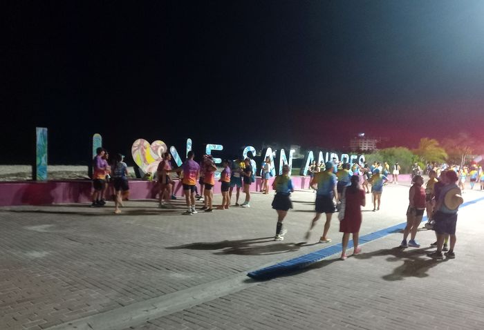 Une vingtaine de minutes plus tard, nous arrivons sur le lieu de départ, le « letrero » « I Love San Andres », où il y a déjà forte affluence!