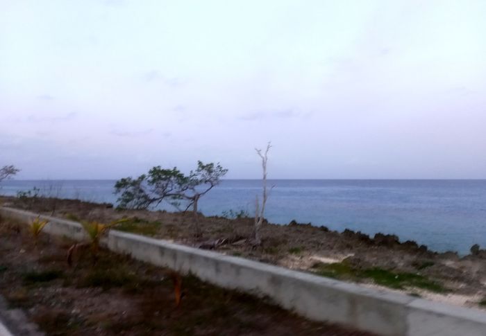 Au bout de l’île, le jour s’est levé d’un seul coup, et le changement d’orientation fait intervenir un nouvel élément, le vent! Fort mais finalement plus positif que l’inverse car il apporte de la fraîcheur. Il fera ainsi une impression de mieux par rapport à la chaleur nocturne sans aucune brise marine.