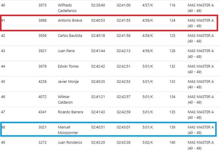 Je termine donc en 2h40’51 », visiblement à la 136 place au général et à la 48e position de la catégorie Master A (40-49 ans).